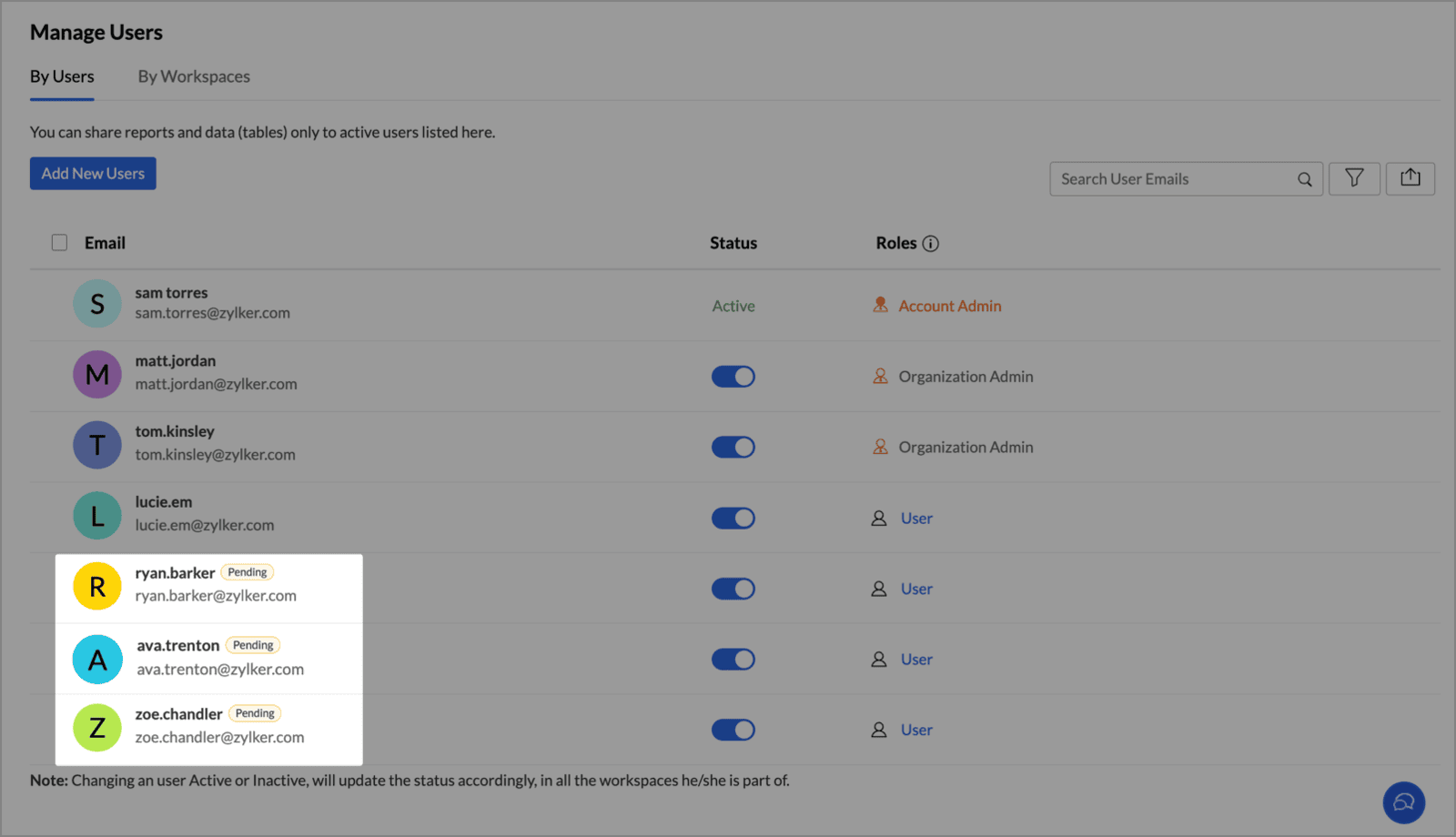Zoho Analytics unterstützt nun noch mehr Datenquellen. Mit Cassandra lassen sich Daten aus hochvolumigen NoSQL-Datenbanken importieren, die automatisch in analysierbare Tabellen umgewandelt werden. Außerdem kannst du direkt auf Cloud-Datenbanken wie SAP HANA und ClickHouse zugreifen. Mit der neuen Synchronisierungsfunktion kannst du Benachrichtigungen erhalten, wenn Tabellenimporte fehlschlagen. Für Snowflake gibt es jetzt zusätzliche Authentifizierungsmöglichkeiten wie Private Key und OAuth, die mehr Sicherheit und Flexibilität bieten. - Einladungssystem für Benutzer