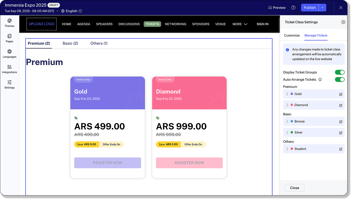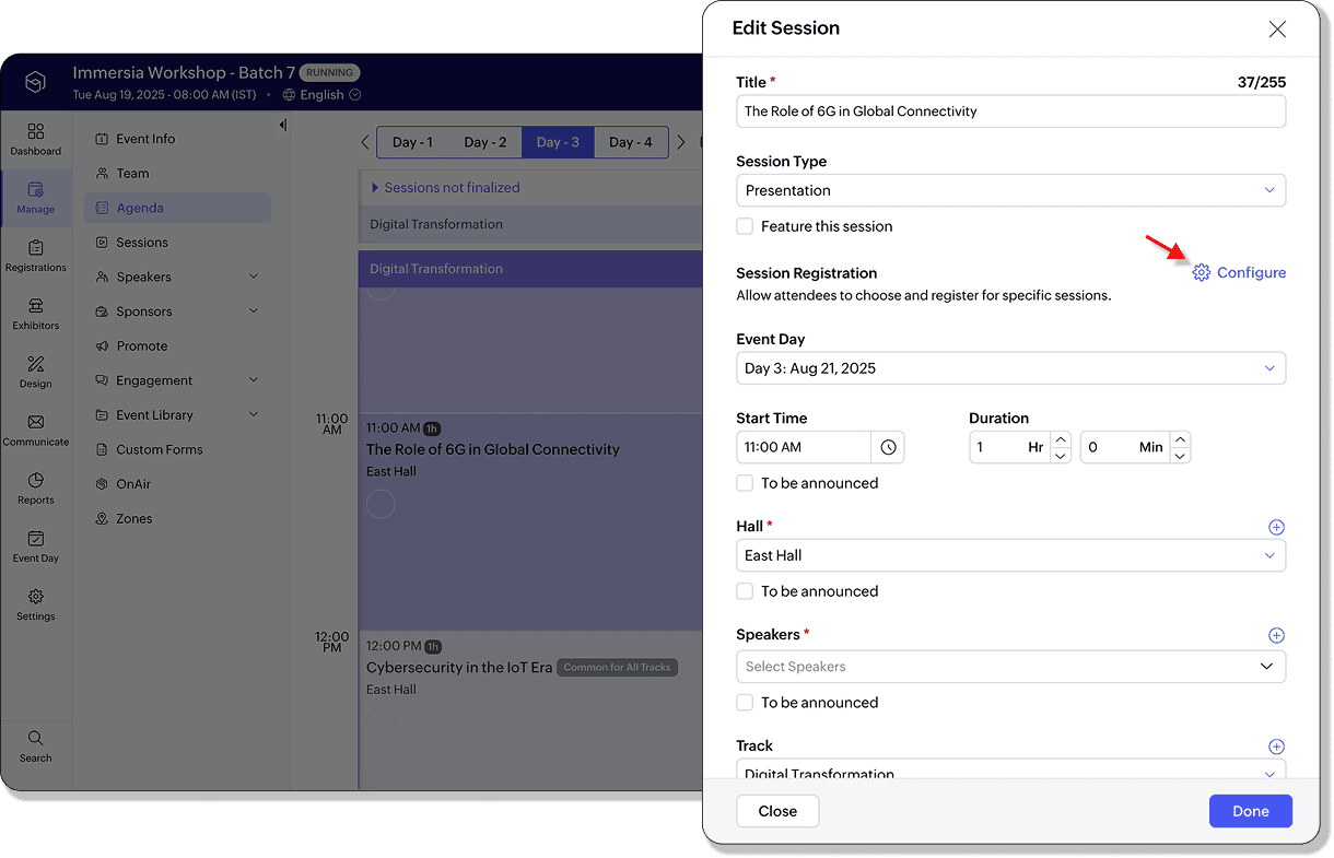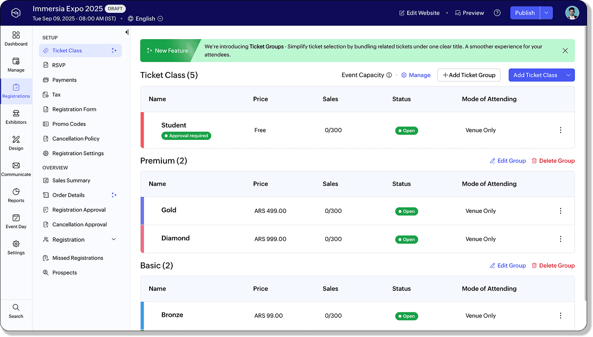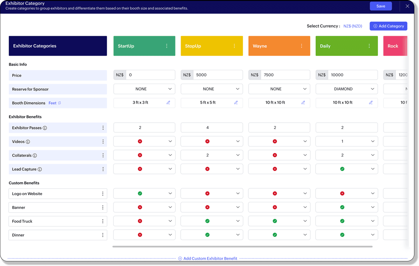 Die Verwaltung von Aussteller-Kategorien ist flexibler geworden. Farben, Sichtbarkeitsoptionen und unterschiedliche Darstellungsformen bieten mehr Gestaltungsmöglichkeiten. Kategorien lassen sich zudem direkt mit Sponsoren- oder Ausstellerpaketen verknüpfen, was die Organisation vereinfacht und die Präsentation auf der Event-Website verbessert. - Neue „Withdraw“-Option in der Registrierung