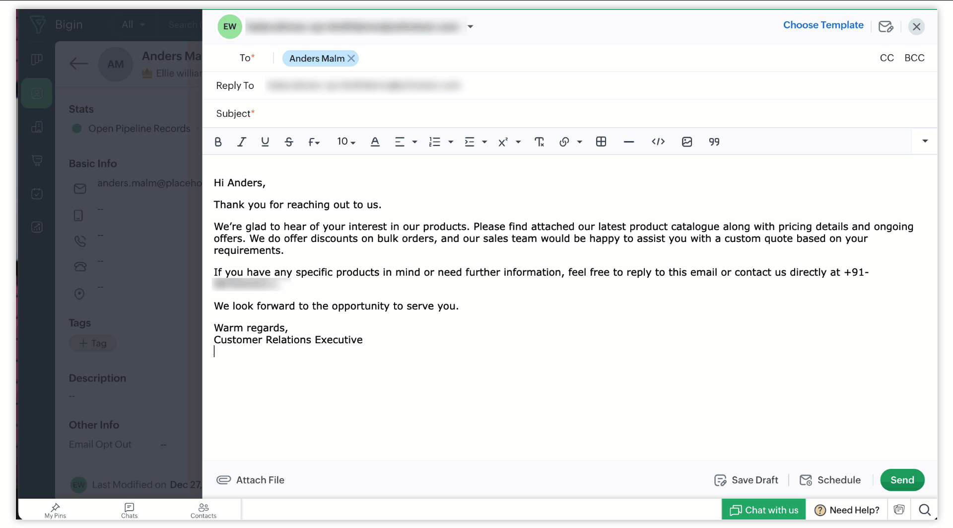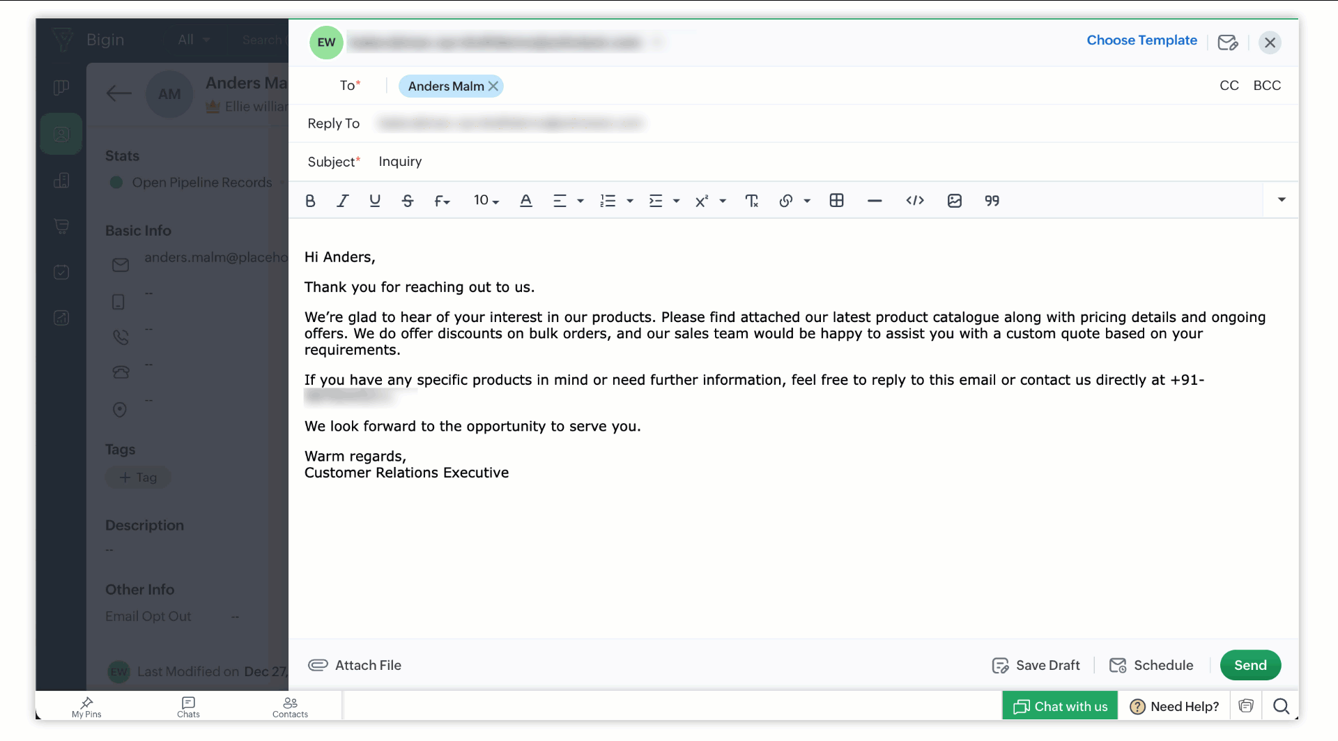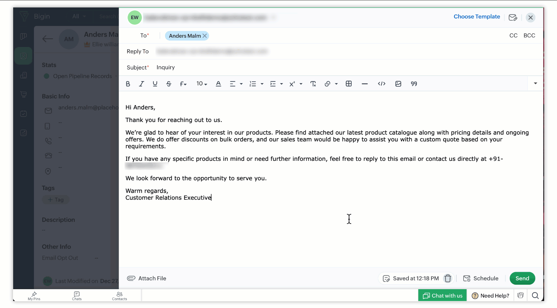 Zoho Bigin hat das E-Mail-Modul erweitert und ermöglicht nun das Speichern und Planen von E-Mails – ein praktisches Update für alle, die mit Kunden in verschiedenen Zeitzonen arbeiten.