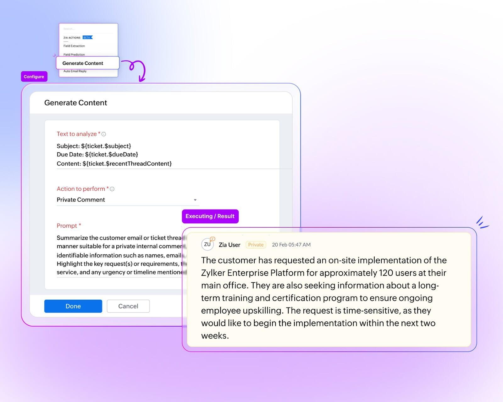 Zia Actions: KI-gesteuerte Workflows für mehr Effizienz im Support